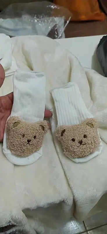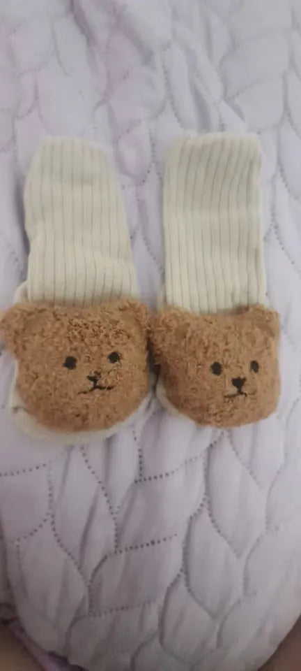 We love these cartoon bear socks! They're a hit with us and our little one, keeping their feet warm, cozy, and secure. The anti-slip soles are genius, especially for wobbly toddlers. They stay on well, unlike other socks that slip off easily. We’ve had fewer tumbles since using these. Five stars from us!